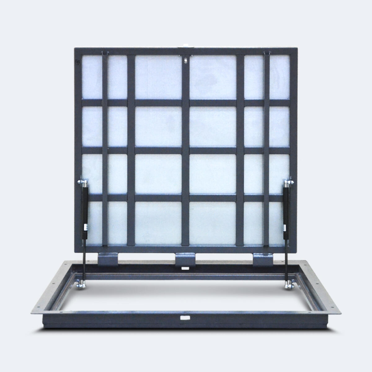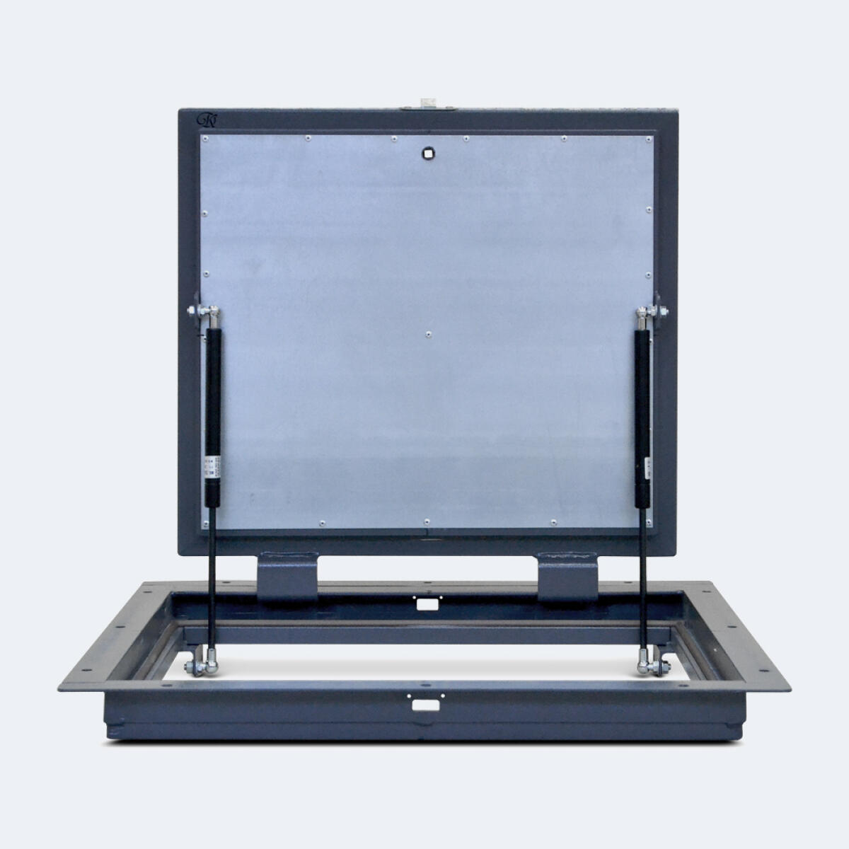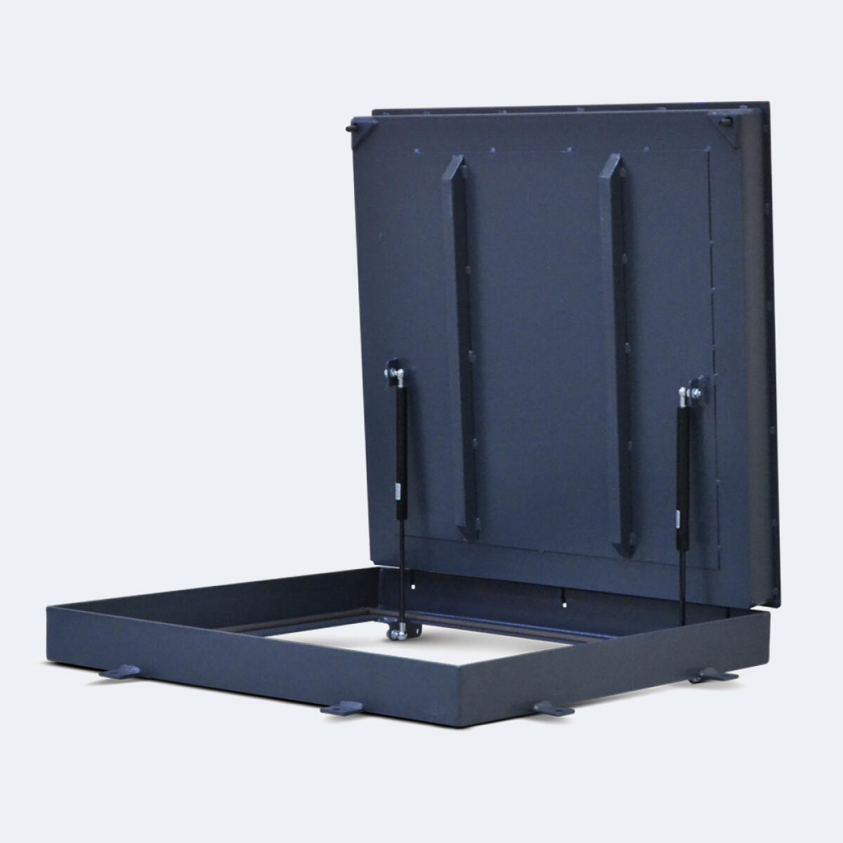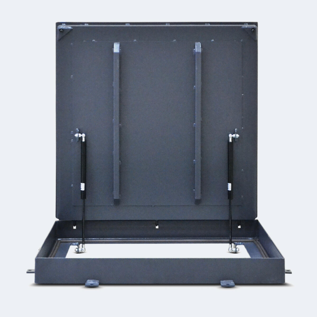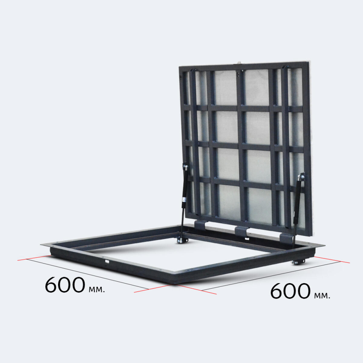 Напольный люк со стальной крышкой, толщиной 2 мм. на газовых амортизаторах. Предназначен для быстрого и удобного доступа к погребам и подвалам, системам ревизии, учёта и другим инженерным коммуникациям. Подходит для эксплуатации в гаражах, хозяйственных и промышл...