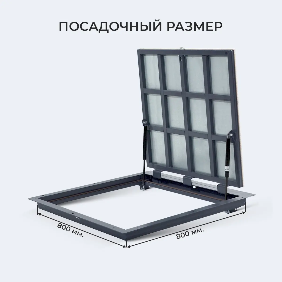 - Контур уплотнения по 4 сторонам и короб герметизации в петельной части обеспечивают герметичность люка и исключают попадание запахов и сквозняков с нижнего этажа в жилое помещение.