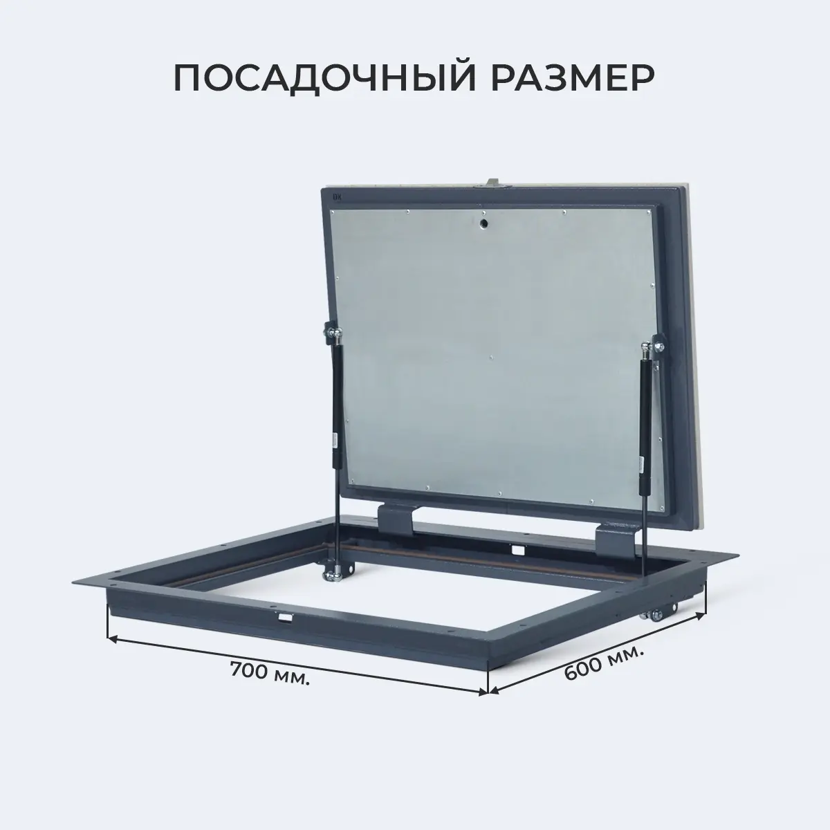 Крышка надёжно фиксируется в вертикальном положении (90°). После отделки напольным покрытием (по инструкции) выдерживает равномерно-распределённую нагрузку до 1000 кг/м2.
